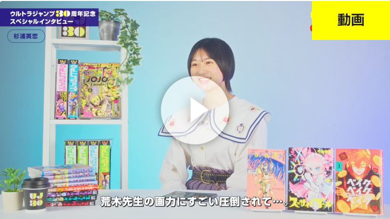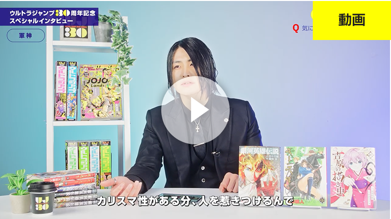 『ウルトラジャンプ』30周年を記念してラッパーの般若さんにインタビュー。『ジョジョ』シリーズを始め、ジャンプ作品が大好きという般若さんに、『天草四郎は救いたい』『バイオーグ・トリニティ』『ジョジョの奇妙な冒険 第9部 The JOJOLands』の3作品を読んでいただき、感想を伺いました。インタビュー当日は、なんと私物の『The JOJOLands』のTシャツを持参していただきました!