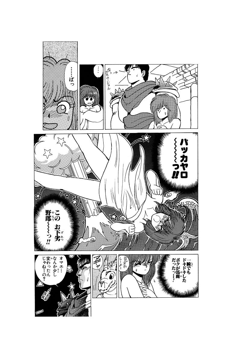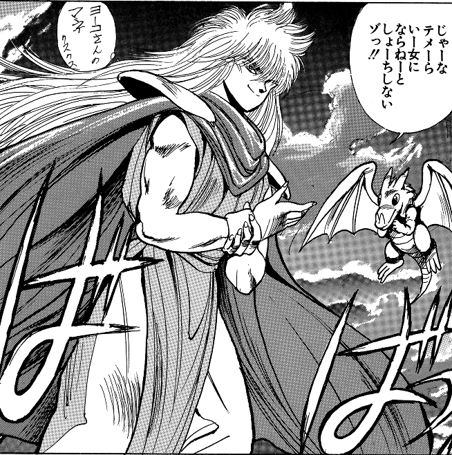 世界戦闘シーン全般が強く印象に残っています。緻密に描かれた絵や人物の配置、背景とのバランスが素晴らしく、シリアスなシーンからギャグ顔への緩急も絶妙です。また、擬音の使い方や魔法の呪文も独特で、思わず声に出してしまいたくなる楽しさがあります。そういったシーンは全体的に印象に残っていますね。