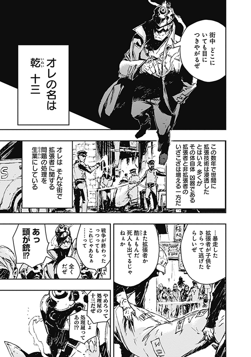 池田もう「十三おもろいぞ!」ってことですね。拡張者たちもいろんなタイプが出てくるし、いろんなパーツで拡張されている感じが乗り物感覚っていうか、そんな不思議な感覚もオススメですね。拡張者の出てくるペースもエグくて、全力疾走の障害物競走みたいな作品です。そのテンポ感もいいと思います。